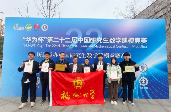 2025年12月5-7日,“华为杯”第二十二届中国研究生数学建模竞赛颁奖大会在江苏徐州隆重召开,福州大学在本届竞赛中共获国家级奖55项,获奖数量创历史新高,其中全国一等奖3项(其中1项同时获华为专项奖,每个研究生培养单位最多3项)、二等奖20项和三等奖32项,总获奖比例39.28%。同时,福州大学再次获“优秀组织单位”,数统学院刘勇进教授获评“先进个人”。
