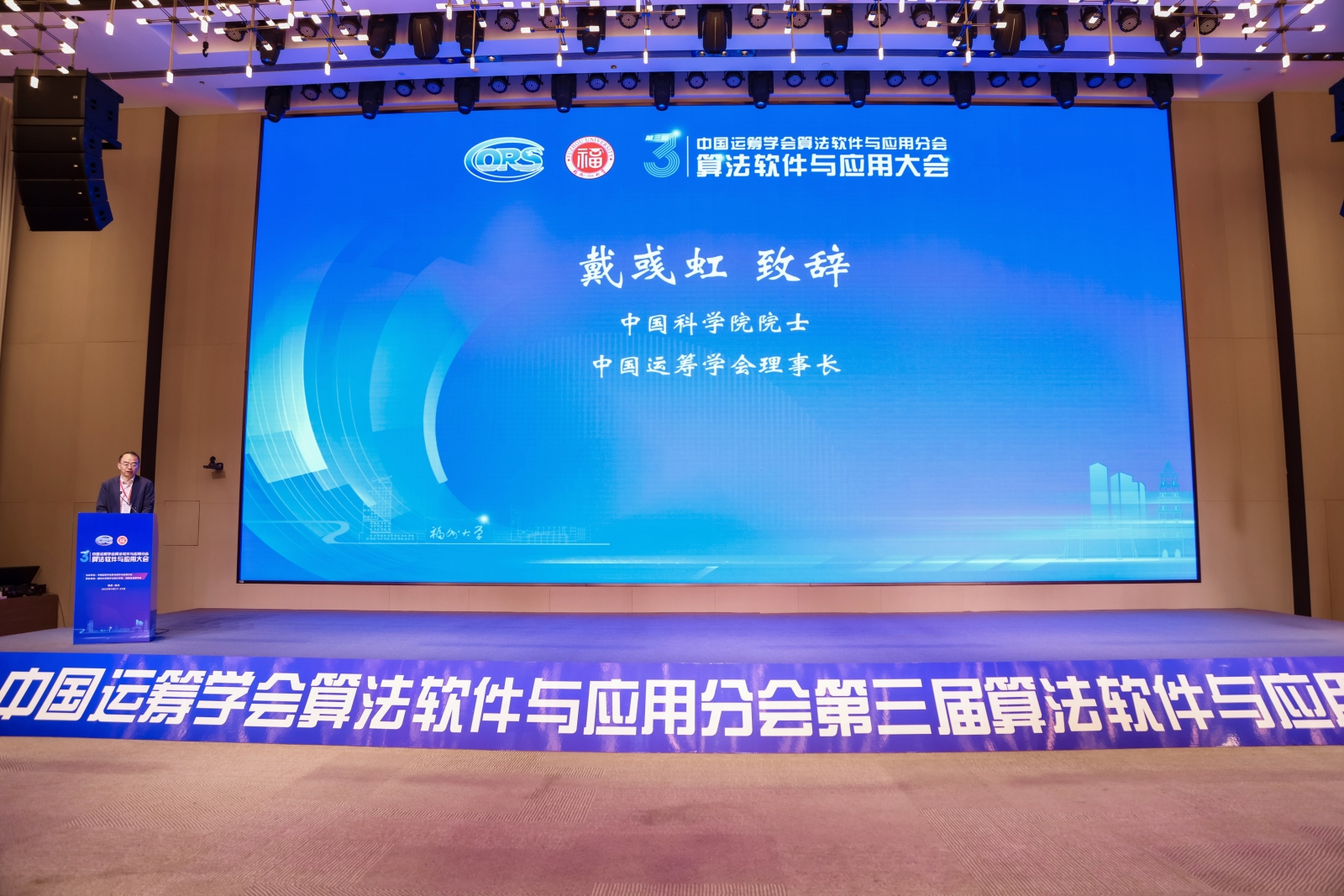 卢孝强副校长在致辞中代表福州大学对全体参会嘉宾的到来表示热烈欢迎,向长期支持学校学科发展及本次大会筹备的各界人士致以诚挚感谢。他简要介绍了福州大学近年来在学科建设与科研发展的显著成效,强调运筹优化的重要价值,期待大会推动相关领域理论、软件与产业应用融合,为行业高质量发展赋能。